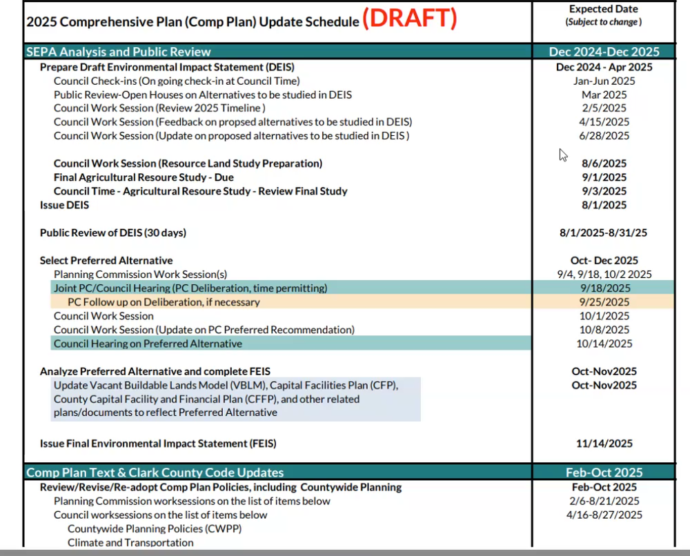 - 2025 Comprehensive Plan Update. See below for the copy of the updated schedule that was shared online (screen shots, doc was not posted)